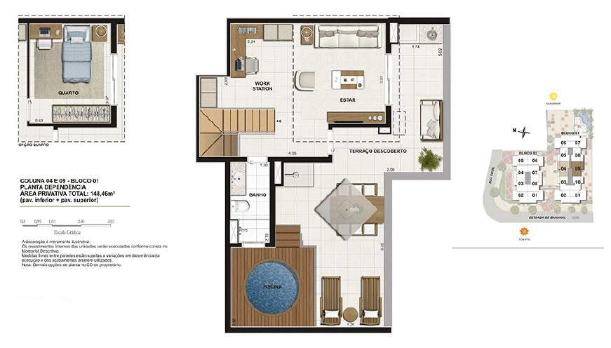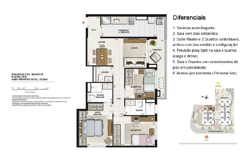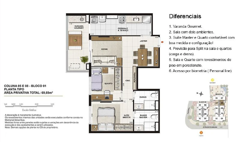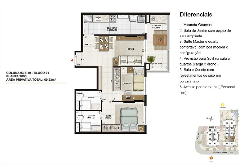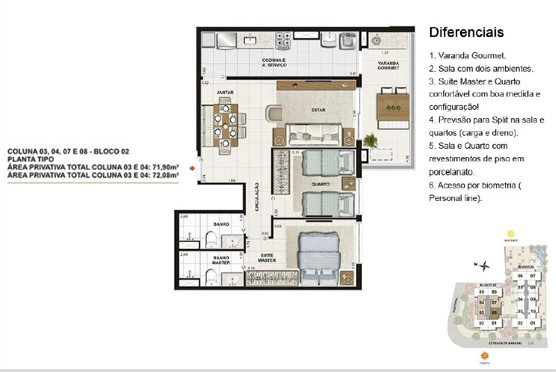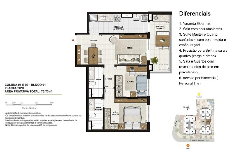 Apartamentos de 2 Quartos com 69m² até 73m²;