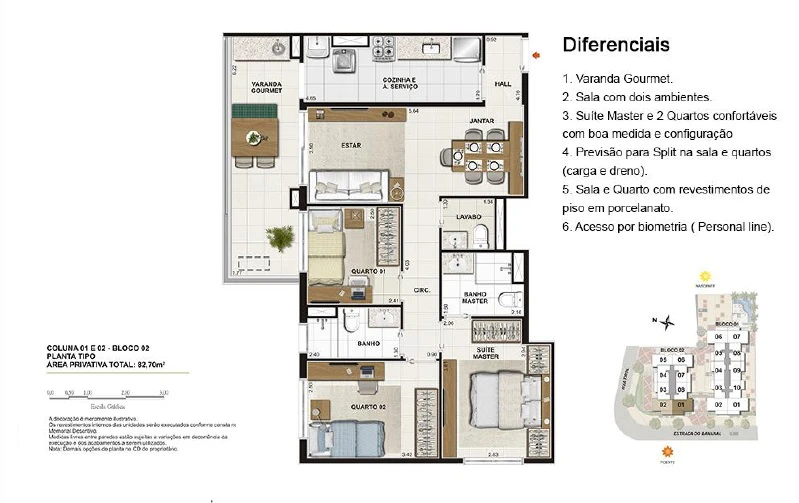Apartamentos de 3 Quartos com 75m² até 92m²;