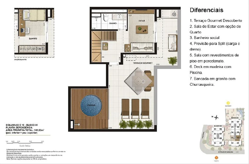 • Previsão para infra de ar-condicionado tipo split nos dormitórios e na sala (somente dreno e carga);